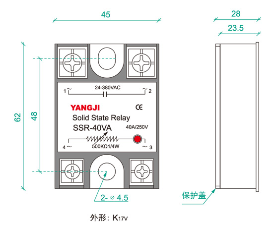 產(chǎn)品特性: ●體積小,防水,防震動(dòng),無(wú)噪音無(wú)觸點(diǎn)引弧; ● 光電隔離,耐壓高,壽命長(zhǎng),抗干擾強(qiáng),可靠性高; ● 交流負(fù)載采用雙向可控硅移相調(diào)節(jié)輸出、調(diào)節(jié)范圍寬; ● 外接500KΩ 電位器或4-20mA 即可實(shí)現(xiàn)輸出電壓調(diào)節(jié),使用簡(jiǎn)單化; ● 螺絲固定安裝,標(biāo)準(zhǔn)模數(shù)化尺寸,配有安全保護(hù)罩;