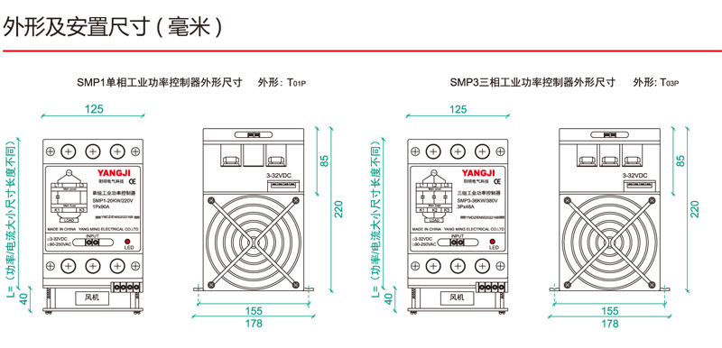 安全注意事項(xiàng): 1. 本控制器規(guī)格不同其外形安裝尺寸各有不同,選型時對照規(guī)格設(shè)計留有安裝空間。 2. 模塊電流規(guī)格選用應(yīng)考慮到電網(wǎng)電壓的波動和負(fù)載啟動時的瞬間電流沖擊。環(huán)境條件, 散熱條件因素,建議留有適當(dāng)余地. 為確保模塊長期可靠工作。 3. 過壓過流保護(hù): 在模塊輸出端并接( 電壓800-900V) 壓敏電阻可有效的過壓保護(hù), 主回路串接快速熔斷器或斷路開關(guān)作為過流保護(hù),取值為實(shí)際負(fù)載電流的1.5 倍。 4. 送電中,請勿碰觸模塊任何接線端子以避免觸電; 更換保險絲前,請務(wù)必關(guān)閉電源系統(tǒng),以避免觸電。