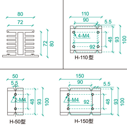 產品特點: 固態(tài)繼電器或電力半導體要配什么型號的散熱器?其實二者之間并沒有完全一致的對應關系,因為固態(tài)繼電器或電力半導體模塊的發(fā)熱量主要跟驅動的負載的實際電流有關,而與其本身的電流等級大小關系不大。 發(fā)熱量的計算公式: 1、 發(fā)熱量=實際負載電流×1.5W/安培,以上公式適用于單相固態(tài)繼電器,R系列固態(tài)調壓器,單相交流調壓模塊,單只電力半導體模塊系列產品。而對三相固態(tài)繼電器,三相交流調壓模塊系列產品,其實際負載電流應該為三相實際負載電流之和,計算公式如下: 2、 發(fā)熱量=實際負載電流×3.0W/安培,以上公式適用于單相整流模塊及三相整流模塊系列產品。 散熱器的作用就是把固態(tài)繼電器或電力半導體模塊工作中產生的熱量有效的發(fā)出來,但實際上(考慮到價格因素時)選擇散熱器的大小,很難用一句話就能確定,因為散熱器效果不但跟散熱器大小有關,還跟環(huán)境溫度(季節(jié)),通風條件(自然冷卻或強迫冷卻及風量大。┮约鞍惭b密度等因素有關。散熱效果的參照標準:使固態(tài)繼電器或電力半導體模塊的底板(與散熱器接觸面)溫度不得超過80℃.因此實際應用中可在散熱器安裝面靠近固態(tài)繼電器或模塊的邊緣處(20mm以內)安裝一只75℃的溫度開關(帶一對常閉觸點),把固態(tài)繼電器或模塊的控制信號串入這對常閉觸點,這樣當檢測點溫度超過75℃時,常閉觸點跳開,切斷控制信號,強迫關閉固態(tài)繼電器或模塊的輸出,使其得到保護。一般在每相實際電流超過50A,安裝密度大,環(huán)境溫度高的地方,好采用溫度開關保護。 選用散熱器除考慮上述因素外,還要考慮固態(tài)繼電器或模塊本身體積與散熱器能否相配,以及散熱器在機柜中的安裝空間,但要保證使在惡劣情況下固態(tài)繼電器或模塊的底板溫度不得超過80℃。 本公司主要的散熱器產品主要有以下規(guī)格: YM-I型 YM-W型 YM-T型 YM-G型 YM-L型 YM-M型 YM-H型 YM-E YM-Z型 YM-Y型 YM-X型。