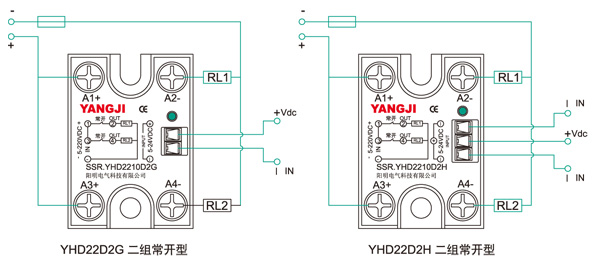 產(chǎn)品應用: 廣泛應用在化工儀器設備,食品機械,健身器材,小型直流電動機,各種電磁閥,加熱控溫設備等自動化控制領域。 2G: 輸入給一定控制信號,輸出二路負載同時由常開狀態(tài)變?yōu)槌i]工作狀態(tài)。 2H: 輸出負載有一路狀態(tài)切換成另外一路工作狀態(tài)。 特別適用于需要雙路同時控制直流負載的開關場合。 |