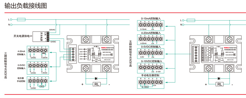 Module selection and precautions: 1. There are two kinds of module shapes (R-type and H-type). The factory default specification is R-type Under this function, users can choose V-type or L-type wiring control (R-type series is suitable for heating and temperature control equipment); H type: multi function signal selection control (suitable for transformer, torque motor, fan, water pump, etc. with low speed load).