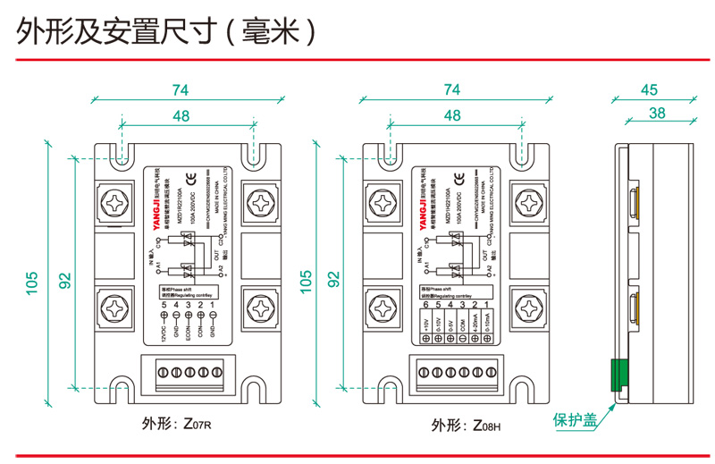 Features and Application: 1. Small volume, waterproof, anti vibration, no noise, no contact arc; 2. Built in resistance capacitance absorption circuitt, long service life, strong anti-interference, high reliability; 3. Basic TRIAC phase-shifting regulation output, enhanced SCR phase-shifting regulation output; 4. It can be matched with the output signal interface of temperature control instrument and microcomputer; 5. Multi function signal input can be selected, the phase-shift is from 180 to 0 degrees, standardized size; 6. .
