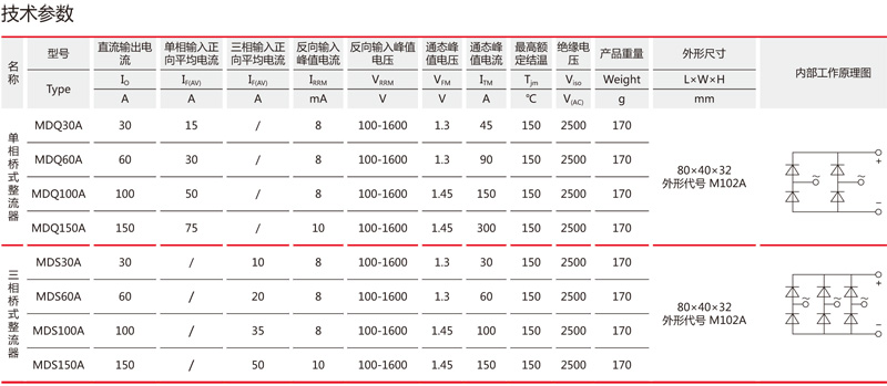 Single/Three Phase Rectifying Bridge Modules >> Rectifiter Module MDQ/MDS(30A-150A)