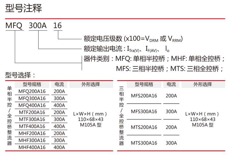 Application: 1. Excitation power supply of DC motor and input rectification of switching power supply; 2. DC power supply of instrument, input rectifier power supply of PWM inverter; 3. Electrical and auxiliary power supply for remote control system of CNC machine tools; 4. Current charging DC power supply for inverter welding machine. Code: M105A